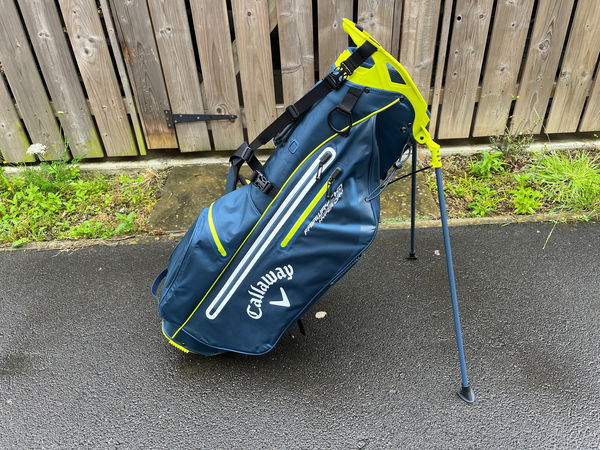Despite this, the bag shines in usability with features like a webbed phone pocket and a 14-way divider for club organisation. Its waterproof construction proved resilient even in torrential rain, while the sturdy, modern legs added stability and style.